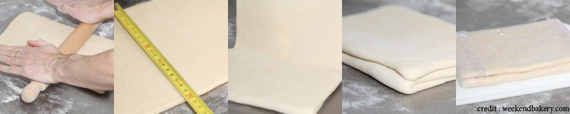 การรีดแป้งแต่ละครั้งไม่ควรใช้เวลาเกิน 2-3 นาที หากเป็นมือใหม่ไม่มีประสบการณ์ หรือลองหัดทำแรกๆ ขั้นตอนนี้อาจกินเวลานาน เราสามารถพับแป้งสามส่วนแบบ letter fold จากนั้นคลุมแป้งก่อนนำไปแช่เย็นไว้ประมาณ 20 นาที แล้วค่อยนำมารีดต่อ เพื่อรักษาความเย็นให้เนยแข็งตัวอยู่เสมอ