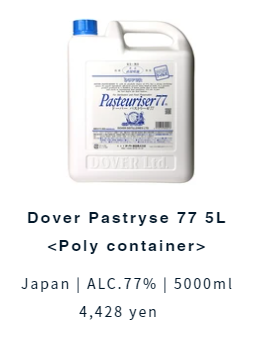 2. Dover Pasteuriser 77 ผลิตมาจากแอลกอฮอล์บริสุทธิ์ 100% ที่กลั่นมาจากอ้อย นำมาผสมกับน้ำบริสุทธิ์ที่ทาง Dover ใช้ผลิตสาเก โดยขั้นตอนการผลิตสาเกนั้น จะต้องใช้น้ำที่มีความบริสุทธิ์มากอยู่แล้ว เมื่อนำวัตถุดิบจากธรรมชาติมาใช้ จึงไม่มีสารที่เป็นอันตรายต่อร่างกาย เป็นแอลกอฮอล์ที่สามารถรับประทานได้ ต่างจากแอลกอฮฮล์ประเภทอื่นที่ได้มาจากการสังเคราะห์ทางเคมี ซึ่งราคาของแอลกอฮอล์ที่เป็น Food Grade จะราคาสูงกว่าแอลกอฮอล์ทั่วไป หากเจอร้านที่ขายราคาต่ำกว่าปกติ ให้ระวังว่าจะเป็นของปลอมไว้ก่อนค่ะ เช่น ราคา Dover ขนาด 5 ลิตร ที่ญี่ปุ่นขายในประเทศ 4,428 เยน ถ้ามาขายในไทย แล้วราคาต่ำกว่าพันก็น่าคิดนะคะ...(เดี๋ยวนี้จีนปลอมของญี่ปุ่นเยอะมากค่ะ ถ้าจะซื้อต้องเช็คข้อมูลดีๆ นะคะ)