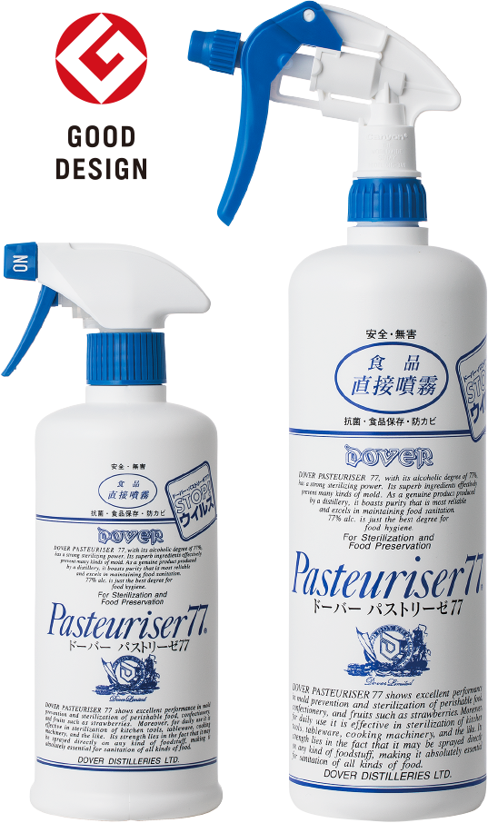6. ด้วยดีไซน์ของขวดที่ Minimal สวยงามกว่าขวดสเปรย์แอลกอฮอล์ทั่วไป จึงทำให้ Dover Pasteuriser 77 ได้รับรางวัล Good Design ในปี 2019 ซึ่งทางผู้ผลิตได้ให้ข้อมูลว่า ทางบริษัทออกแบบแพคเกจจิ้ง Dover Pasteuriser 77 นี้มาตั้งแต่ปี 1986 และไม่เคยเปลี่ยนเลยตั้งแต่เปิดตัว “นี่เป็นตัวอย่างของการออกแบบที่ดี กาลเวลาจะตามเราทันเอง” หรือเรียกอีกอย่างว่าเป็น “ตัวอย่างของการออกแบบที่มาก่อนกาล” ไม่ต้องเปลี่ยนให้เข้ากับยุคสมัย เพราะยุคสมัยจะตามเรามาเอง