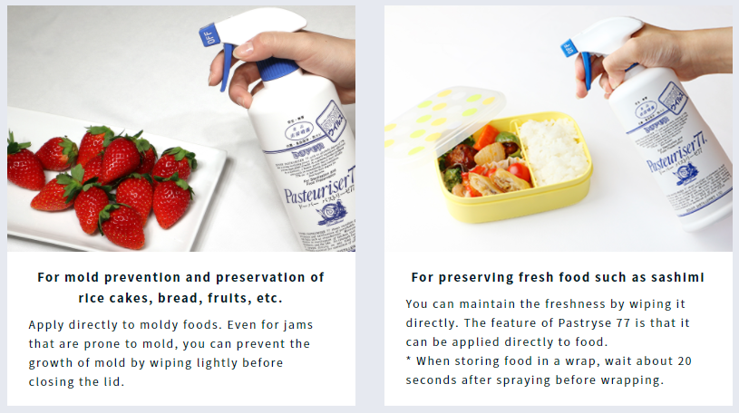 4. ในเว็บไซต์ของผู้ผลิตแจ้งว่า Dover Pasteuriser 77 ใช้ฉีดลงบนอาหารได้ ไม่ว่าจะเป็นของสด ผัก ผลไม้ หรือแม้แต่ซาชิมิ แต่จุดประสงค์คือเพื่อ “ยับยั้งและป้องกันการเจริญเติบโตของเชื้อรา” “คงความสดใหม่” ไม่ใช้เพื่อการฆ่าเชื้อโรคหรือฆ่าไวรัส อย่างไรก็ตามองค์การอนามัยโลกระบุไว้บนเว็บไซต์ว่า “ยังไม่มีหลักฐานที่ระบุว่าเชื้อ Coronavirus ติดต่อสู่คนผ่านทางการสัมผัสอาหาร”