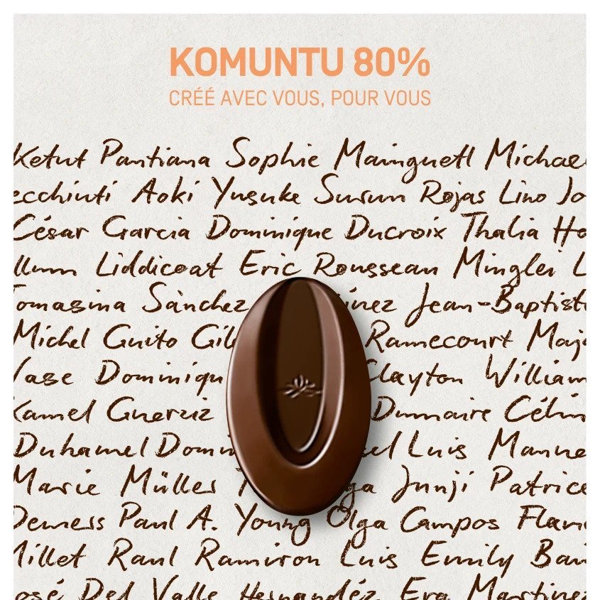 “KOMUNTU 80%” ไม่ใช่ช็อกโกแลตธรรมดา แต่เป็นคำสัญญาของแบรนด์ที่จะดำเนินธุรกิจด้วยหลักความยุติธรรมต่อคู่ค้าทุกคน ตั้งแต่ เกษตรกรผู้ปลูกโกโก้ ซัพพลายเออร์ พนักงานและลูกค้า ที่มีตั้งแต่ระดับเชฟ ไปจนถึงอาติซานเบคเกอร์ ซึ่งผู้คนเหล่านี้ จำนวนทั้งสิ้น 100 คน ได้ถูกคัดเลือกให้มีส่วนร่วมในการสร้างสรรค์ “KOMUNTU 80%” ด้วยเช่นกัน